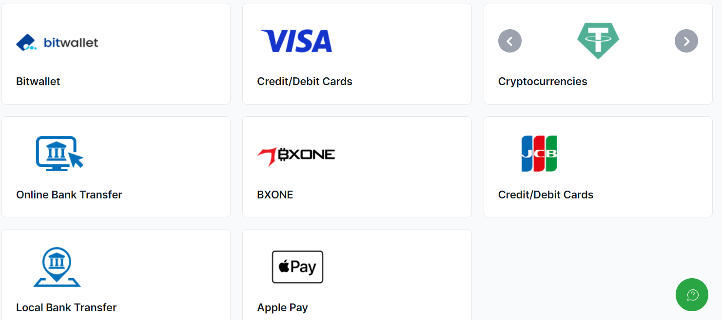 仮想通貨: ビットコインなど25種類の仮想通貨での入金に対応しています。